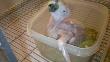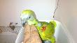Caiques cabeza negra o Pionites melanocephalus, recién destetados, sexados y anillados. Machos