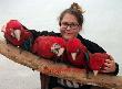 4 Primolius maracaná, 1 Ara macao, 3 Ara severa