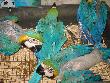 4 Primolius maracaná, 1 Ara macao, 3 Ara severa