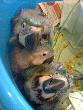 3 Ara ararauna papilleras, criandose en ambiente familiar de padres muy grandes. Sexaje en camino.