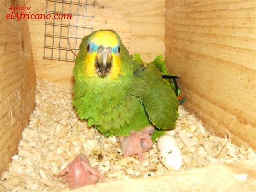 Amazona Amazonica con sus pollos. Propiedad de Dietmar J. Wuetz