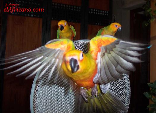 Una de nuestras jendayitas criadas a mano volando a mi llamada.