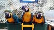 4 Primolius maracaná, 1 Ara macao, 3 Ara severa