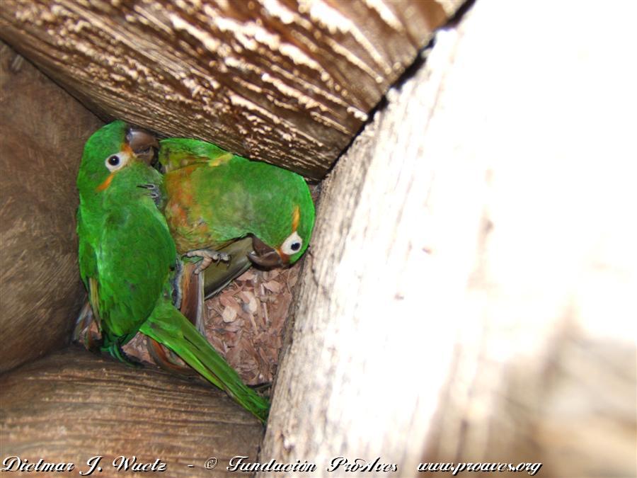 Leptosittaca branickii en un Nido artificial