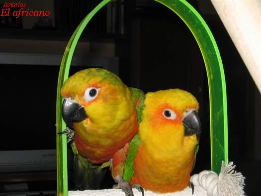 Pareja de Aratinga Jendaya, macho criado en nuestras instalaciones. Propietaria Araceli Dorado